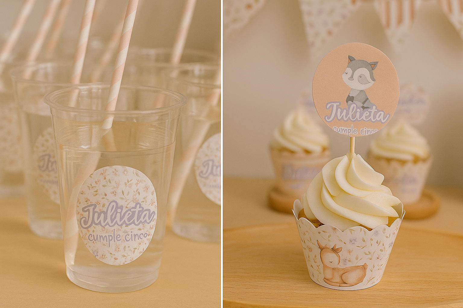 • Banderines con diseño del personaje o la temática (2u. x hoja A4)